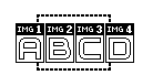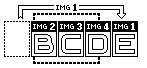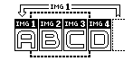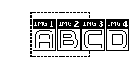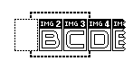 Hier sehen wir eine Zeile von 4 Images, die einen zusammenhängenden Bildbereich A-B-C-D repräsentieren (der fett gestrichelte Rahmen stellt den Sichtbereich des DIV-Containers dar):