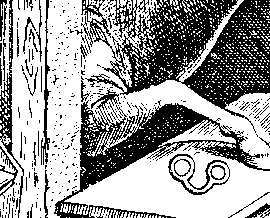 Person im Fenster :: Parodistische Anspielung auf das geheimnisvolle Gesicht in diversen Gemälden Hieronimus Boschs. |